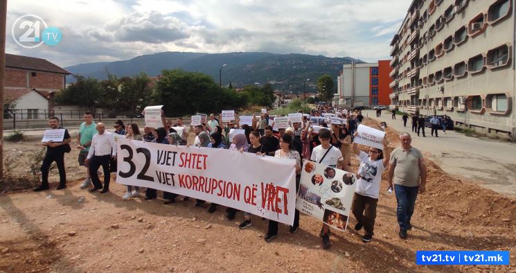 “32 vjet, shtet 32 vjet korrupsion që vret”, me këtë parullë sot familjarët e viktimave të spitalit modular në Tetovë bashkë me qytetarët marshuan nga vendi ku ka qenë spitali modular deri te gjykata e Tetovës. Familjarët kërkuan dorëheqjen e kryeprokurorit edhe të gjithë prokurorëve që kanë marrë pjesë në hetimin e këtij rasti.