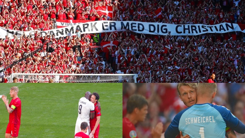 Topi u dëbua nga fusha dhe tifozët, lojtarët dhe stafet e Kombëtareve filluan të duartrokasin në mbështetje të Christian Eriksen.