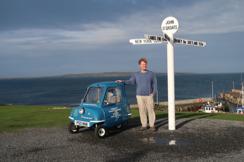 Alex Orchin, 31 vjeç, u nis nga John O’Groats në Skoci të shtunën dhe deri më tani ka përshkuar 570 km. Vetura është vetëm 134 cm i gjatë, 98 cm i gjerë dhe 100 cm i lartë, transmeton rtv21.tv.