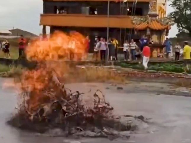 Një fenomen gjeologjik jashtëzakonisht i pazakontë u regjistrua të mërkurën në Tajvanin jugor, duke i lënë banorët dhe kalimtarët të shtangur. Vullkani i baltës Wandan filloi të shpërthente papritur në mes të një rruge, duke nxjerrë baltë dhe flakë deri në dy metra të larta.