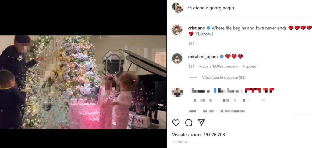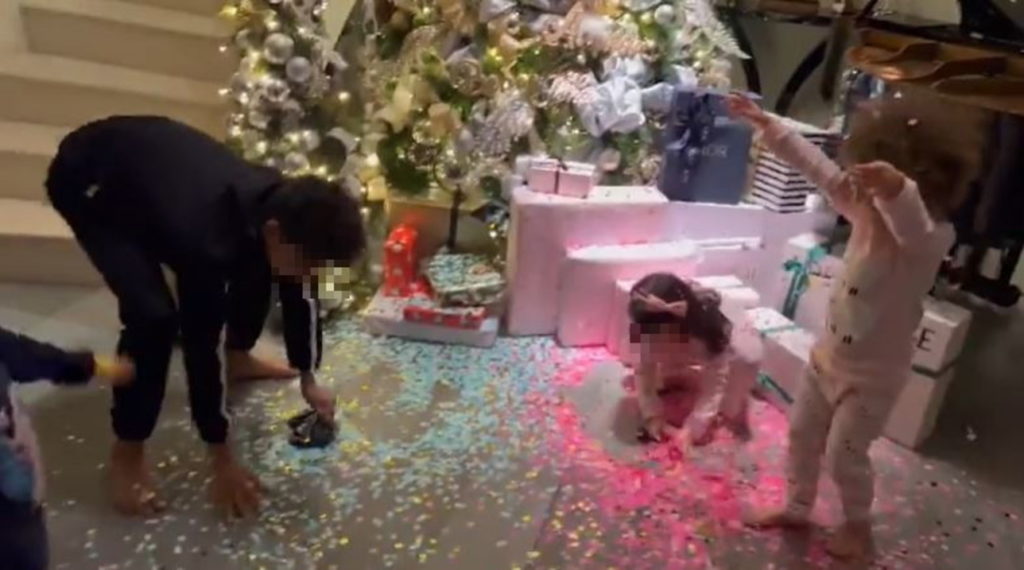 Ka qenë djali i madh Cristiano Jr, së bashku me Evën, Mateon dhe Alana Martinan që kanë shpërthyer tollumbacet dhe kanë treguar se do të kenë një vëlla dhe një motër të vogël. Ngjyra rozë dhe blu vërshonin nëpër shtëpi mes djemve që u gëzuan për ardhjen e një vëllai tjetër dhe vajzave që u gëzuan për vajzën që do t’u bashkohet.