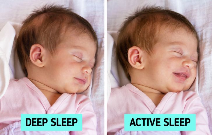 Kur fle, një i porsalindur normalisht kalon në 2 faza të gjumit: gjumë aktiv dhe gjumë të thellë. Faza aktive, e njohur edhe si REM e cila është një akronim për Lëvizjen e Shpejtë të Syve, mendohet se prodhohet nga aktiviteti intensiv i trurit. Kjo ndodh afërsisht 60-90 minuta pasi të bini në gjumë, por gjumi funksionon në cikle, kështu që REM do të alternohet edhe me gjumë të thellë.