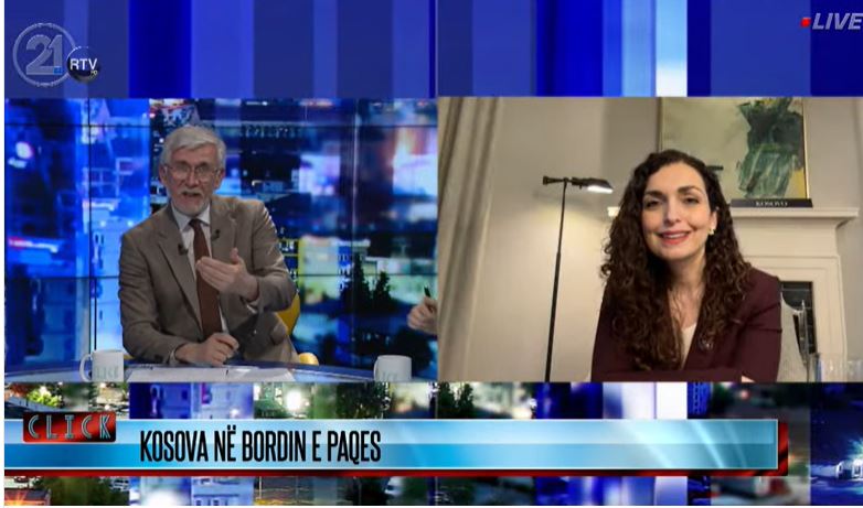 Presidentja e Kosovës, Vjosa Osmani, në një intervistë direkte në ”Click” të RTV21 nga SHBA-të ka folur për pjesëmarrjen e Kosovës në Bordin e Paqes, zotimet politike të vendit dhe fuqizimin e Forcës së Sigurisë së Kosovës (FSK).