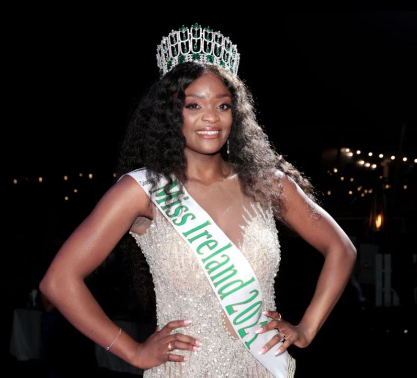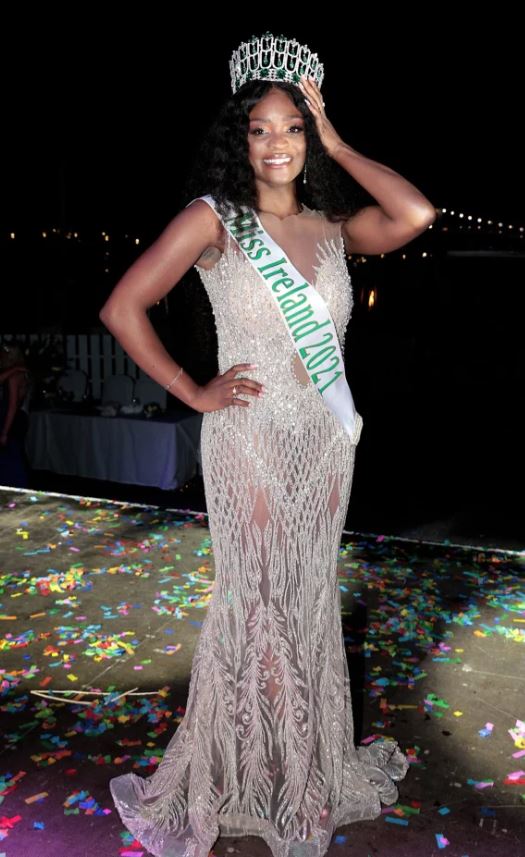 Pamela Uba, 26 vjeçe nga Galaway i Irlandës, fitoi çmimin e më të bukurës në garën e sivjetme të bukurisë, Miss Irlanda 2021.