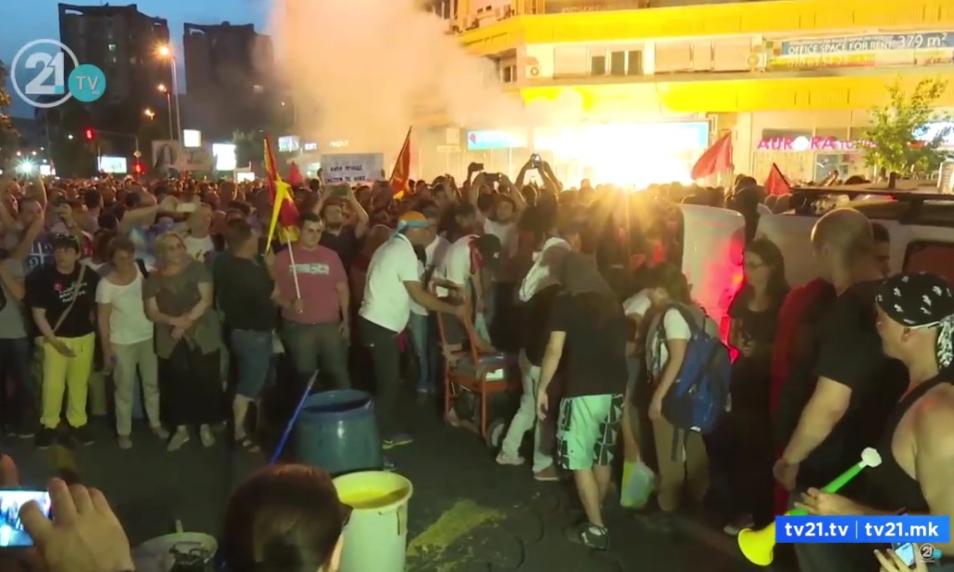 Disa orë pasi që Ivanov e kumtoi vendimin, protestuesit sulmuan Zyrën e Presidentit në qendër të Shkupit.