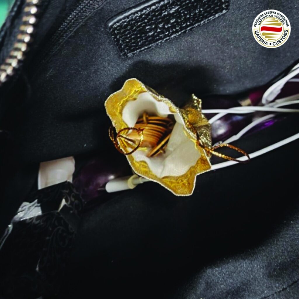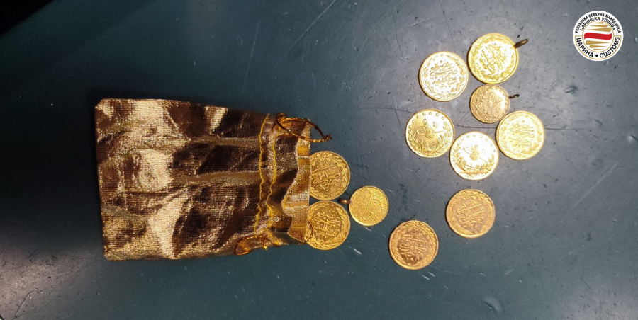 “Në pikën kufitare Bogorodica është parandaluar kontrabanda e 11 monedhave të arit me peshë totale 71 gram dhe vlerë totale prej 567 mijë denarësh. Drejtoria për Hetime ndaj një personi ka dorëzuar kallëzim penal në Prokurorinë Themelore Publike në Gevgelija për kryerjen e veprës penale “Kontrabandë”, e ndëshkueshme sipas Kodit Penal. E dyshuara, shtetase e Maqedonisë, udhëtonte me autobus në linjën Stamboll – Tetovë. Monedhat e arit i kishte fshehur në një çantë të verdhë brenda çantës së saj, me qëllim që të shmangte kontrollin doganor dhe të evitonte pagesën e detyrimeve ndaj shtetit në shumën prej 149 mijë denarë”, thonë nga Drejtoria e Doganave./tv21.tv