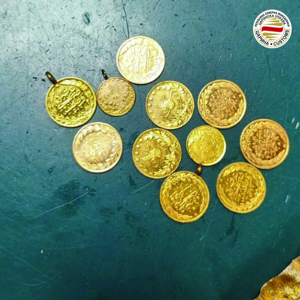 Nga Drejtoria e Doganës njoftojnë se kanë parandaluar kontrabandimin e 11 monedhave të arit në pikën kufitare “Bogorodicë”, përcjell TV21. Monedhat janë gjetur te një shtetase e Maqedonisë e cila po udhëtonte me autobus në linjën Stamboll-Tetovë.