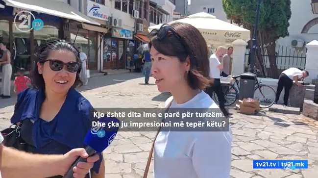 -Është e vështirë të thuhet sepse ne sapo kemi arritur mbrëmë vonë. Kjo është shëtitja jonë e parë në qytet. Male dhe statuja, shumë ka, janë të mira. Ura e Gurit është shumë e bukur. Çarshia e Vjetër këtu është shumë shumë e mirë. Gjithçka është shumë lirë. Ishte ideja e tij të vijmë këtu sepse na pëlqen të vijmë në Ballkan, nuk kishim qenë në Maqedoni më parë. Do të shkojmë edhe në Ohër. Atje do të kalojmë pjesën më të madhe të kohës, liqeni….