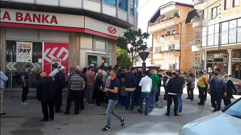 Vazhdon kaosi para bankave në Tetovë. Qytetarë të shumtë edhe sot ishin mbledhur para bankave për të marrë ndihmën financiare nga qeveria për të blerë produkte ushqimore vendore. Para bankave në Tetovë kishte edhe policë.