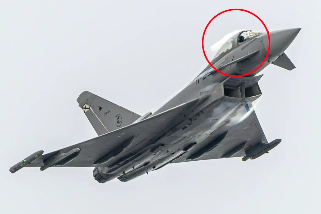 Imazhet treguan zogun duke fluturuar pak përpara aeroplanit që pritej të dhuronte shou. Një foto e dytë tregoi një mjegull copash të kuqe dhe pendësh që rrëshqisnin nga Eurofighter.