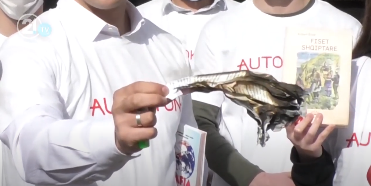 Ky libër është botim i vitit 2009, por është miratuar nga Ministria e Arsimit që në vitin 2002. Në 20 vite askush nuk e korrigjoi, andaj Forumi Rinor i Aleancës për Shqiptarët dhe Alternativës, faqet me përmbajtje, siç i quajtën fashiste, i grisën dhe i dogjën mu përballë Ministrisë së Arsimit.